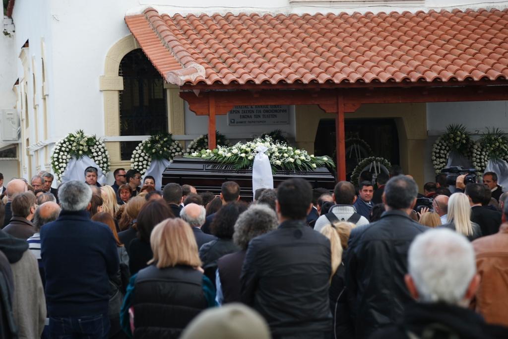 Στον ναό του Αγίου Βασιλείου, στο Περιστέρι, όπου εψάλη η εξόδιος ακολουθία, παραβρέθηκαν ο πρόεδρος της Βουλής, Νίκος Βούτσης, ο πρόεδρος του Ποταμιού», Σταύρος Θεοδωράκης, ο δήμαρχος Περιστερίου, Ανδρέας Παχατουρίδης, η βουλευτής της ΝΔ, Σοφία Βούλτεψη, ο πρώην πρόεδρος της ΕΣΗΕΑ, Πάνος Σόμπολος, οι πρώην διευθυντές του Αθηναϊκού και Μακεδονικού Πρακτορείου Ειδήσεων, Αντώνης Σκυλλάκος και Ηλίας Μάτσικας, καθώς και πλήθος δημοσιογράφων.