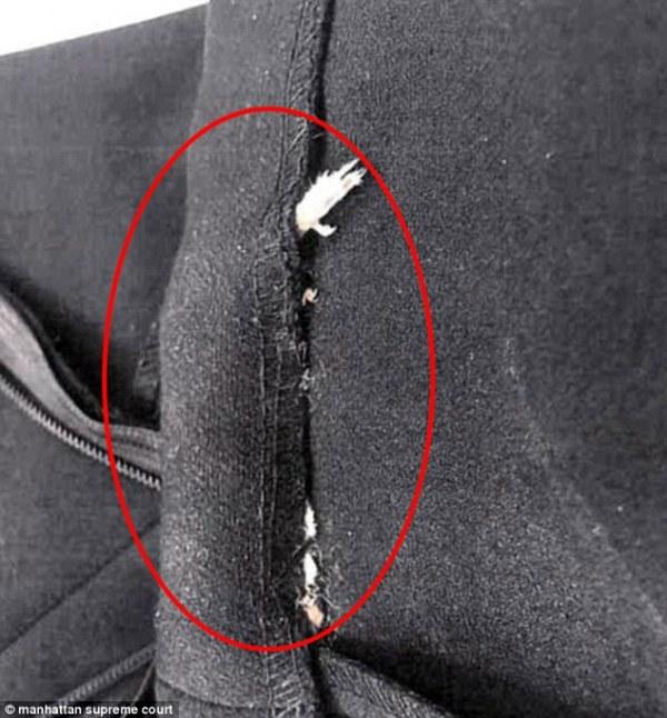 Τα δικαστικά έγγραφα αναφέρουν ότι στη διάρκεια της μέρας η μυρωδιά συνεχιζόταν και η ενάγουσα άρχισε να παρατηρεί ότι κάτι κρεμόταν από το φόρεμα κι ακουμπούσε στο πόδι της κι επιχείρησε να το τραβήξει.