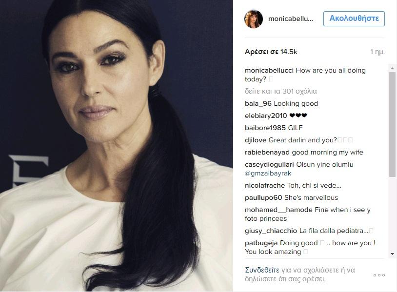 Ο χρόνος πέρασε και δεν την άγγιξε ιδιαίτερα, όπως φαίνεται στην αρετουσάριστη φωτογραφία που ανήρτησε στο Instagram η 52χρονη καλλονή Μόνικα Μπελούτσι.