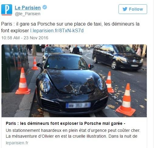 Ένας 25χρονος Γάλλος ονόματι Olivier πήγε τη βόλτα του στο Παρίσι την περασμένη εβδομάδα, αλλά δεν μπορούσε να βρει θέση για να παρκάρει την Porsche του, όπως έγραψε η Le Parisien. Αντί λοιπόν να ψάξει κάπου πιο μακριά και να περπατήσει λιγάκι, αποφάσισε να παρκάρει σε πιάτσα ταξί. Αφήνονταν τα φώτα του αυτοκινήτου αναμμένα.