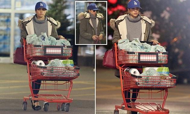 Ο φωτογραφικός φακός την απαθανάτισε έξω από σούπερ μάρκετ, απλά αλλά βαριά ντυμένη λόγω της χαμηλής θερμοκρασίας, να μεταφέρει τα ψώνια της στο αυτοκίνητό της.