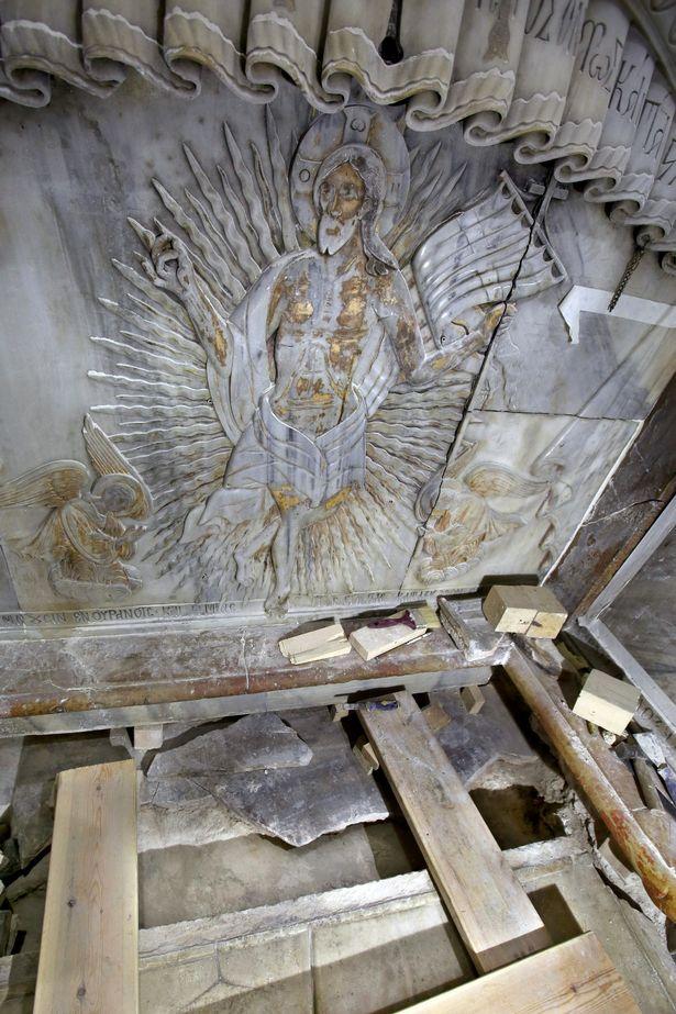 Εκτός από την πλάκα από ασβεστόλιθο, πάνω στην οποία τοποθετήθηκε το σώμα του Ιησού μετά τη Σταύρωση, οι ερευνητές ανακάλυψαν μια δεύτερη γκρίζα μαρμάρινη πλάκα, που κανείς δεν γνώριζε ότι υπήρχε, πάνω στην οποία ήταν χαραγμένος ένας σταυρός, ο οποίος πιστεύεται ότι σκαλίστηκε τον 12ο αιώνα από τους Σταυροφόρους.