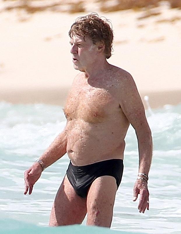 Ο φωτογραφικός φακός απαθανάτισε τον άλλοτε γόη της μεγάλης οθόνης να κάνει μπάνιο στις ακτές του Μεξικό, με μαγιό κολυμβητικού τύπου.