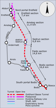 Οι μεγαλύτερες σήραγγες στον κόσμο μετά την ελβετική είναι του Σέϊκάν στην Ιαπωνία (53,9 χλμ.), και η υποθαλάσσια σήραγγα της Μάγχης που ενώνει τη Γαλλία με τη Βρετανία (50,5 χλμ.).