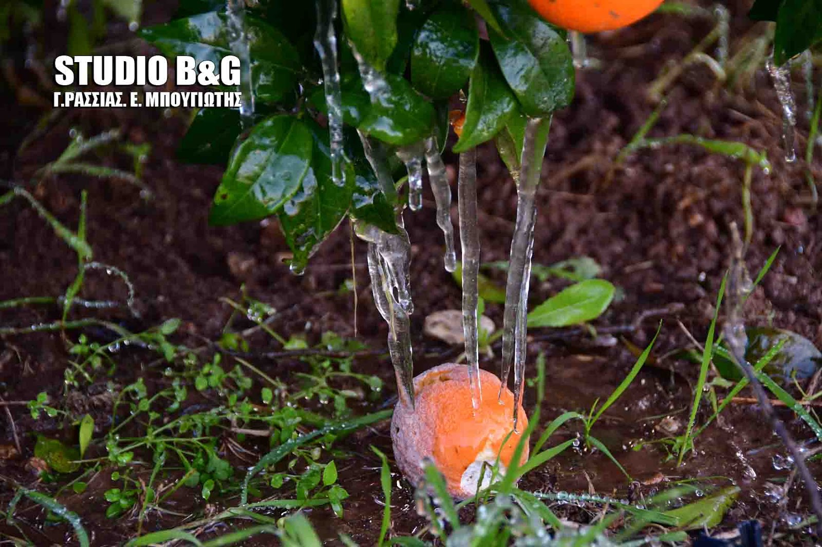 Από την άλλη, στην Αργολίδα, ο παγετός ήταν τόσο εκτεταμένος που η θερμοκρασία έπεσε ακόμα και στους -4 βαθμούς Κελσίου.