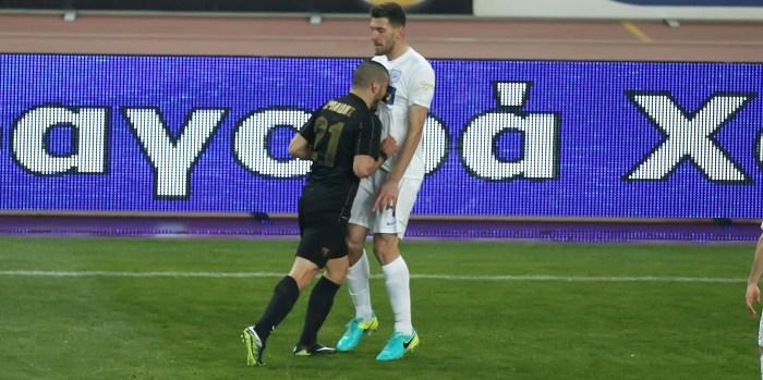 Oι ισορροπίες στο ΑΕΚ – ΠΑΣ (1-1) άλλαξαν στο 10ο λεπτό, όταν ο Αραβίδης αφού έκανε σκληρό φάουλ στον Μπέριο πήγε και του ζήτησε τα ρέστα και τον χτύπησε με το κεφάλι στο στήθος.