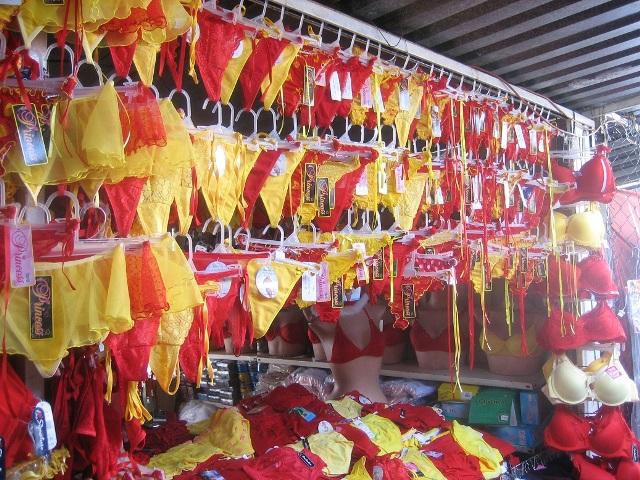 Το κίτρινο χρώμα «αντιπροσωπεύει τις χρυσές ακτίνες της αφθονίας και της ευημερίας», λένε οι πωλητές και, μάλιστα, τονίζουν ότι η παράδοση θέλει τα εσώρουχα αυτά να φοριούνται προς τα πίσω για να εξασφαλίσει ένα νέο έτος γεμάτο πάθος.
