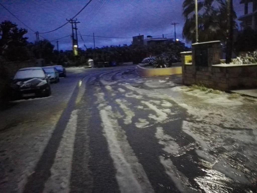 «Ντυμένες» στα λευκά βρήκε το πρώτο φως της ημέρας περιοχές των Χανίων με το χιόνι να σκεπάζει ακόμα και σημεία με πολύ χαμηλό υψόμετρο, όπως το δημοτικό διαμέρισμα Περβολίων του δήμου Χανίων, όπου οι κάτοικοι ξύπνησαν βλέποντας χιόνια στις αυλές των σπιτιών τους.
