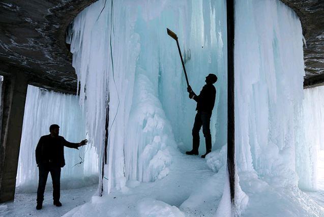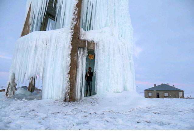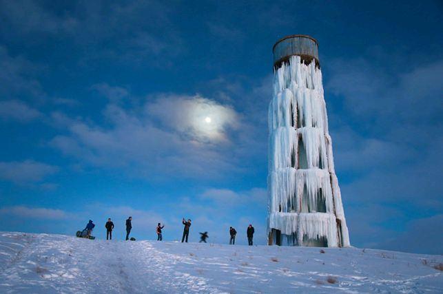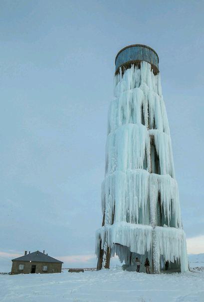 Όπως εξηγούν οι κάτοικοι το νερό της δεξαμενής πάγωσε και το χιόνι άρχισε να «χτίζει» τοίχους γύρω από τη δεξαμενή με αποτέλεσμα να την κάνει να μοιάζει σαν… παγωμένος πύργος βγαλμένος από κάποια ταινία.
