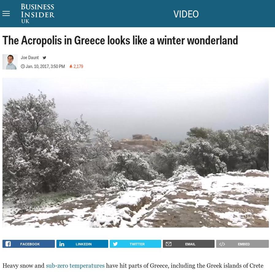 Τέλος, το Businness Insider έγραψε ότι η Ακρόπολη μοιάζει με χειμωνιάτικη Χώρα των Θαυμάτων: