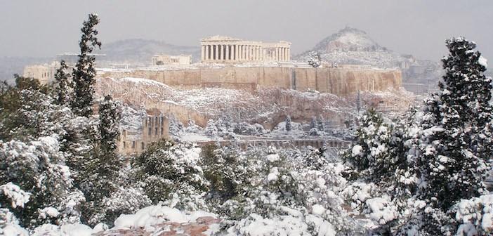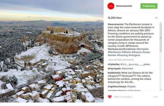 Ο Economist επιλέγει την πιο εντυπωσιακό στιγμιότυπο του βίντεο από τη χιονισμένη Ακρόπολη:
