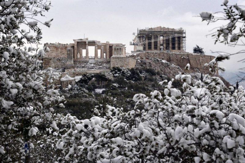 Οι χρήστες του Twitter επίσης φρόντισαν να μοιραστούν εικόνες της χιονισμένης Ακρόπολης: