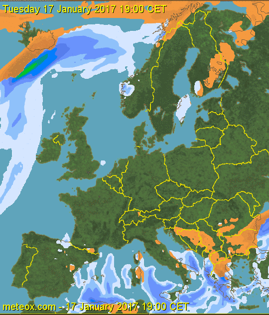 Σύμφωνα με την επίσημη μετεωρολογική υπηρεσία της Γερμανίας, βαρομετρικό χαμηλό από τη Σκανδιναβία όπου δίνει εκεί σφοδρές χιονοπτώσεις με αρκετό ψύχος, θα κατέβει νοτιότερα μεταξύ 16-20 Ιανουαρίου, επηρεάζοντας με βροχές, καταιγίδες και ισχυρές χιονοπτώσεις όλη την κεντρική και ανατολική Ευρώπη.