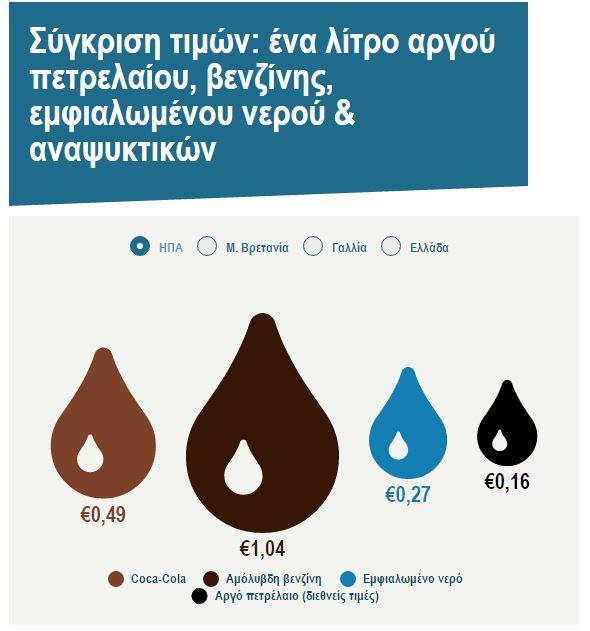 Στην Ελλάδα, η μέση τιμή είναι στα €1,37/ λίτρο.