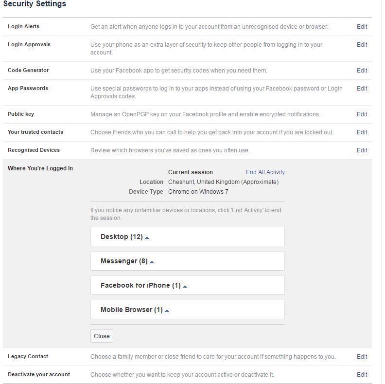 Πολύ απλά πηγαίνετε στο Settings > Security > Where you’re logged on.