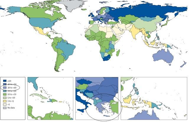 Να σημειωθεί ότι η χώρα μας βρίσκεται στην τρίτη υψηλότερη κλίμακα (30-40%).
