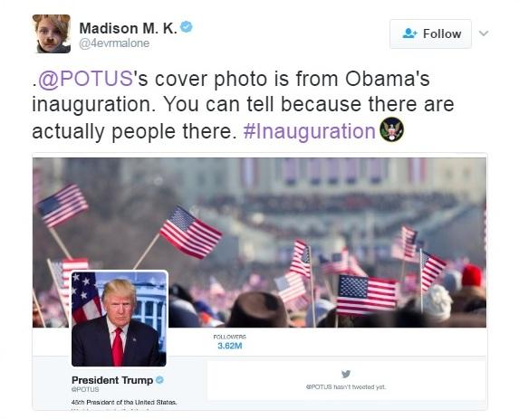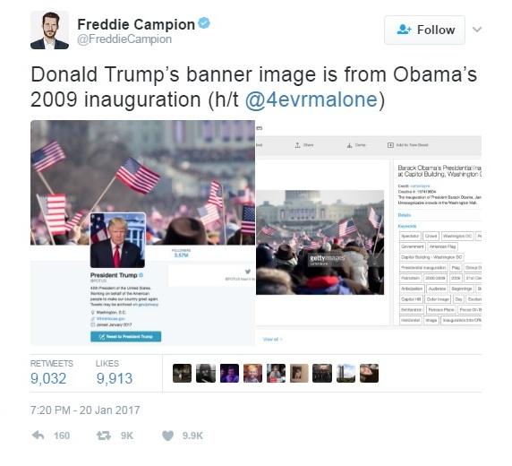 Όπως επισήμαναν παρατηρητικοί χρήστες του μέσου, στην φωτογραφία του φόντου οι άνθρωποι του Τραμπ είχαν χρησιμοποιήσει φωτογραφία από την τελετή ορκωμοσίας του Μπαράκ Ομπάμα.