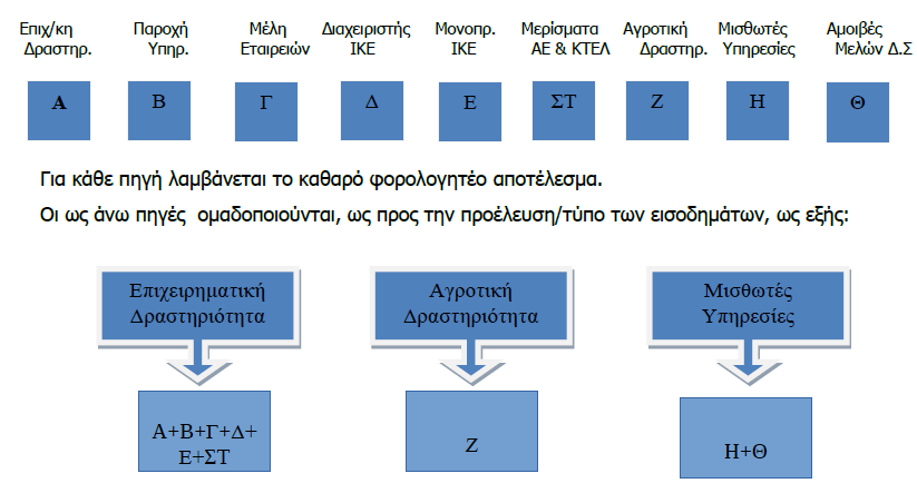 Για κάθε πηγή λαμβάνεται το καθαρό φορολογητέο αποτέλεσμα.