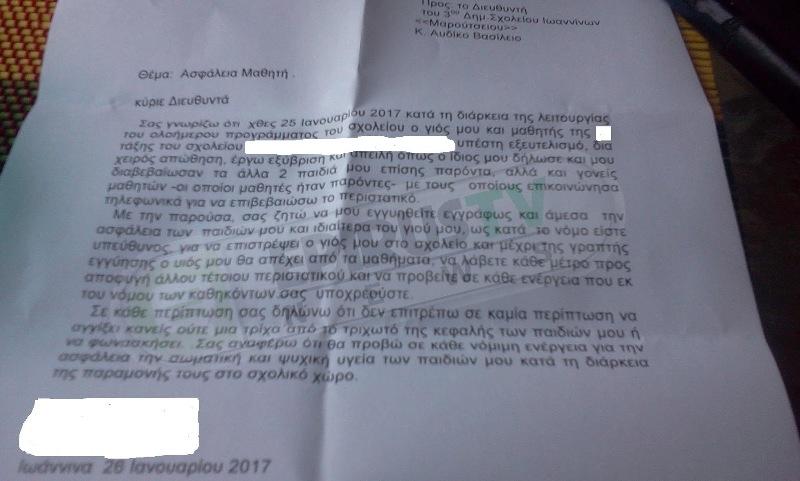“Δεν καθόταν ήσυχα και τον έβαλα στη θέση του” είπε στον πατέρα, σύμφωνα με την καταγγελία του, στο epirustvnews, ο δάσκαλος.