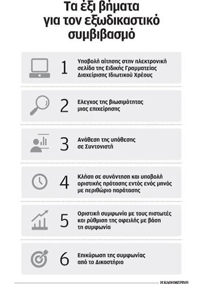 Επιχειρήσεις και επαγγελματίες με χρέη άνω των 20.000 ευρώ που στα τέλη του 2016 παρουσίαζαν τρίμηνη καθυστέρηση μπορούν να ενταχθούν στη διαδικασία του εξωδικαστικού μηχανισμού για την αναδιάρθρωση των χρεών τους.