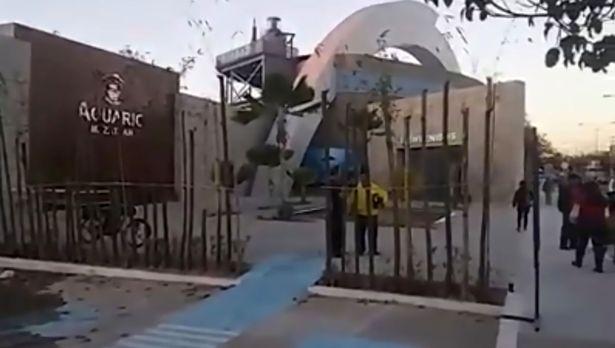 Ράγισε το προστατευτικό τζάμι ενός ενυδρείου που διατηρούσε μια δεξαμενή με 13 καρχαρίες με το νερό να ξεχύνεται με ορμή στους δρόμους της πόλης Μαζατλάν, στο Μεξικό.