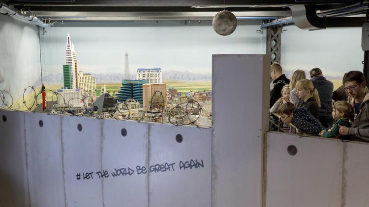 Στο τείχος ήταν γραμμένο το σύνθημα “Αφήστε τον κόσμο να γίνει ξανά μεγάλος”, παραφράζοντας το προεκλογικό σλόγκαν του Τραμπ “Να κάνουμε ξανά μεγάλη την Αμερική”.