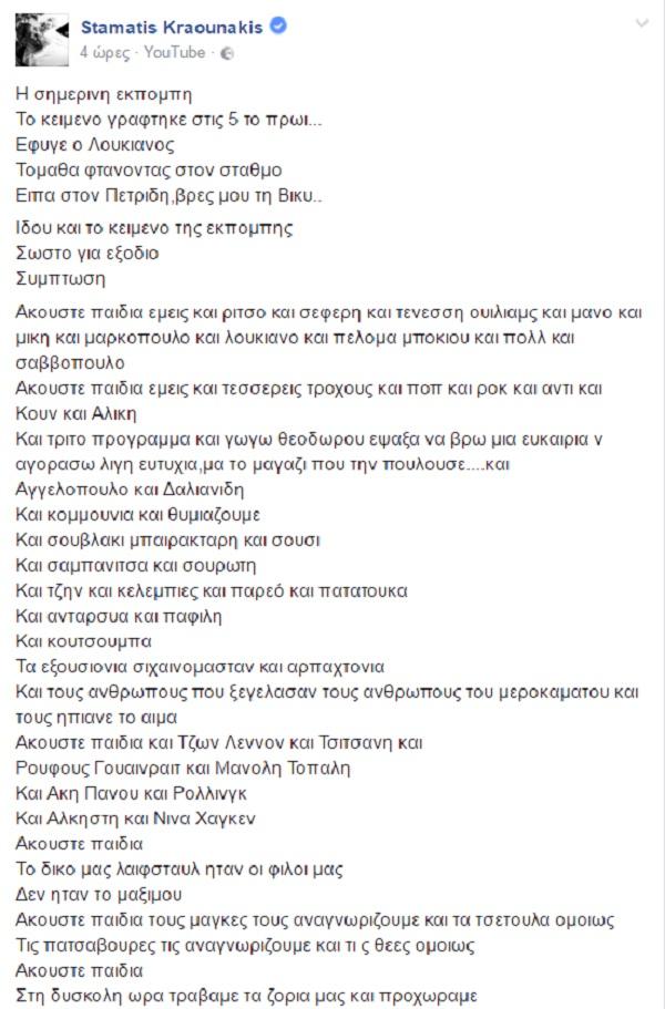 Ιδου και το κειμενο της εκπομπης