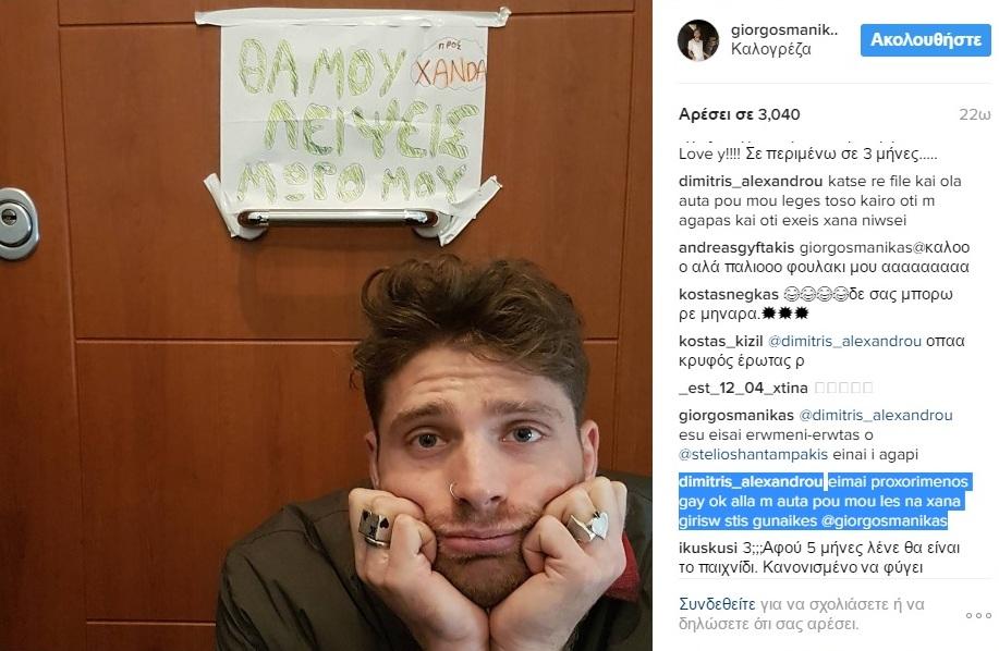 Όλα άρχισαν ότι ο Γιώργος Μανίκας έκανε μια ανάρτηση για τον φίλο του Στέλιο Χανταμπάκη, ο οποίος βρίσκεται αυτές τις μέρες στον Άγιο Δομίνικο ως ένας από τους celebrities στο reality επιβιώσης «Survivor».