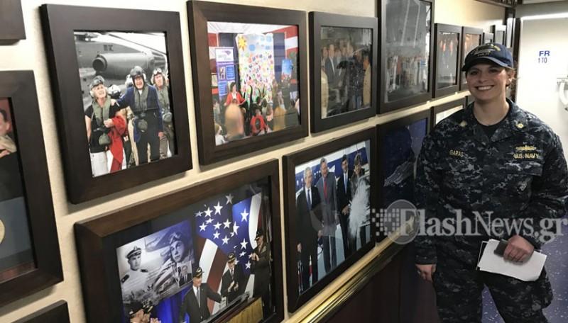 Εκεί, βρίσκεται και ο ελληνικής καταγωγής, από την Κεφαλονιά, Νίκος Μαντλαβάνος, διοικητής μιάς από τις 8 μοίρες, που μίλησε με πολύ καλά ελληνικά, για την ζωή του στο ναυτικό καθώς και τις δυσκολίες που αντιμετωπίζουν όσοι ακολουθούν αυτή την ζωή στην Αμερική.