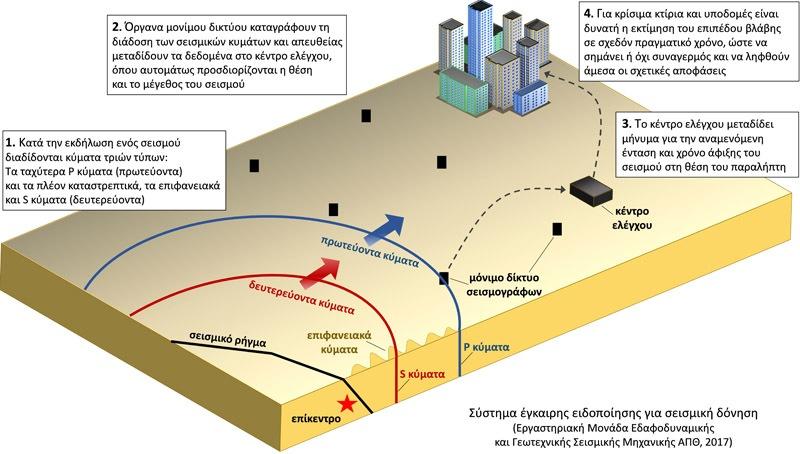 Πώς θα αντιδρούσαν οι πολίτες και το οργανωμένο κράτος στην Ελλάδα, εάν γνώριζαν ότι έχουν στη διάθεσή τους ελάχιστα δευτερόλεπτα, προκειμένου να αντιδράσουν σε επερχόμενο ισχυρό σεισμό; Μπορεί μία ολόκληρη πόλη να προγραμματιστεί σε … «safe mode», τη στιγμή που τα σεισμικά κύματα θα φθάνουν σε κρίσιμες υποδομές της, όπως σχολεία, νοσοκομεία, μνημεία, δημόσια κτίρια και δίκτυα κοινής ωφέλειας; Και τι ασκήσεις κατά του πανικού συνίστανται στους πολίτες, τη στιγμή του συναγερμού; Η αξιοποίηση μίας τόσο κρίσιμης πληροφορίας, όπως η προειδοποίηση σεισμού –και μάλιστα με ακριβή προσέγγιση για το μέγεθος της δόνησης και τις αναμενόμενες ζημιές, δύναται να σώσει ανθρώπινες ζωές και να προλάβει καταστροφές. Πώς, όμως, γίνεται η διαχείρισή της;