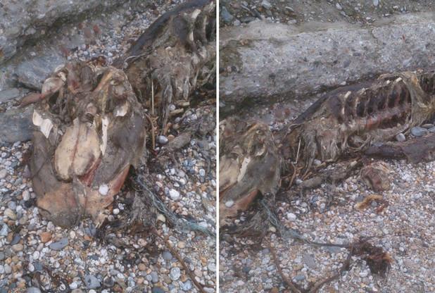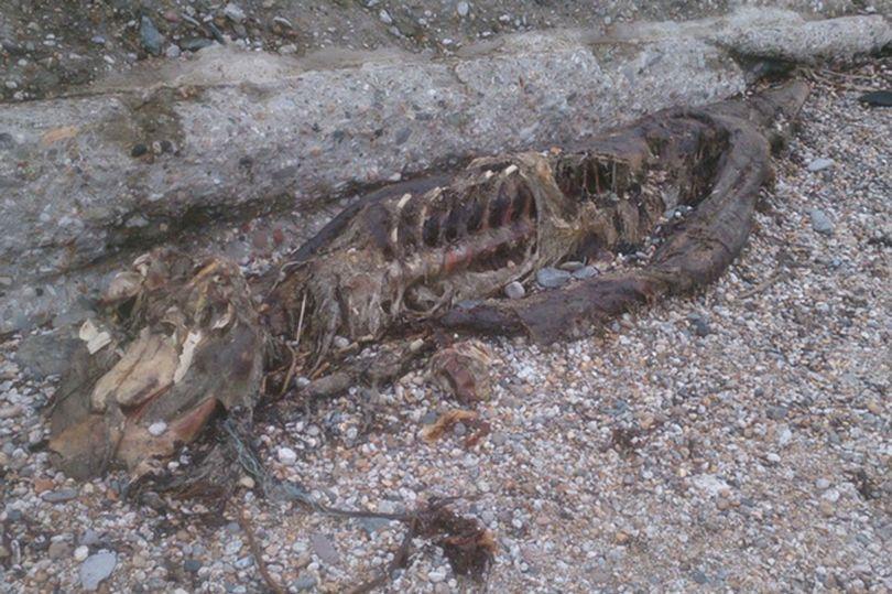 Το «πλάσμα» που βρέθηκε στην παραλία έχει μήκος 2,4 μέτρα και τώρα οι περιβαλλοντολόγοι προσπαθούν να ταχτοποιήσουν σε τι είδους ζώο ανήκει ο σκελετός.