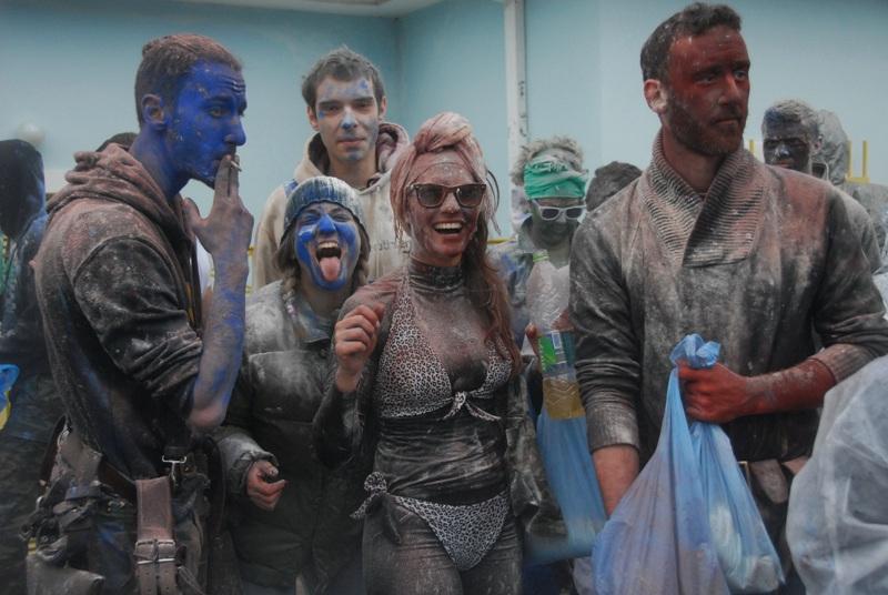 Στο Γαλαξίδι, την Καθαρά Δευτέρα, δεν παίζουν με σερπαντίνες και χαρτοπόλεμο, αλλά παίζουν «αλευροπόλεμο», με βασικά υλικά το αλεύρι και το φούμο.