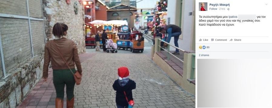 Στην ανάρτηση της, η Ραχήλ Μακρή γράφει: «Τα συλλυπητήρια μου Ipatios P. για τον άδικο χαμό του γιου σου και της γυναίκας σου. Καλό παράδεισο να έχουν».