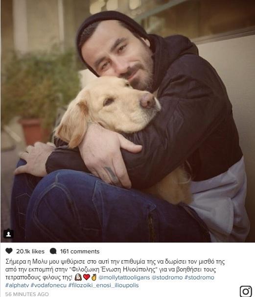 Η μεγάλη του αγάπη, βέβαια, ακούει στο όνομα Μόλυ και δεν είναι λίγες οι φωτογραφίες που έχει ανεβάσει στο Instagram με το αγαπημένο του σκυλάκι. Η τελευταία, μάλιστα, έχει συγκεντρώσει μέσα σε μισή ώρα πάνω από 14 χιλιάδες likes.
