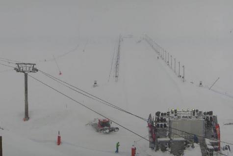 Des skieurs descendent de la piste. Une dameuse ferme la voie. #Tignes pic.twitter.com/meg8G7vZlD