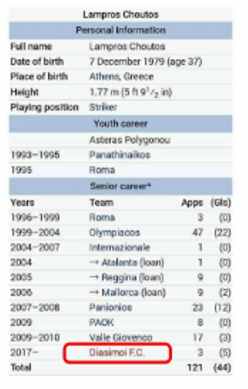 Στη σελίδα του γνωστού ποδοσφαιριστή στη Βικιπαίδεια, για λίγη ώρα εμφανίστηκε στη στήλη με την προϋπηρεσία του στις ομάδες που έχει αγωνιστεί και η «ομάδα» Diasimoi F.C.! Λίγη ώρα αργότερα «κατέβηκε» αυτή η χιουμοριστική παρέμβαση, αλλά το στιγμιότυπο έμεινε.