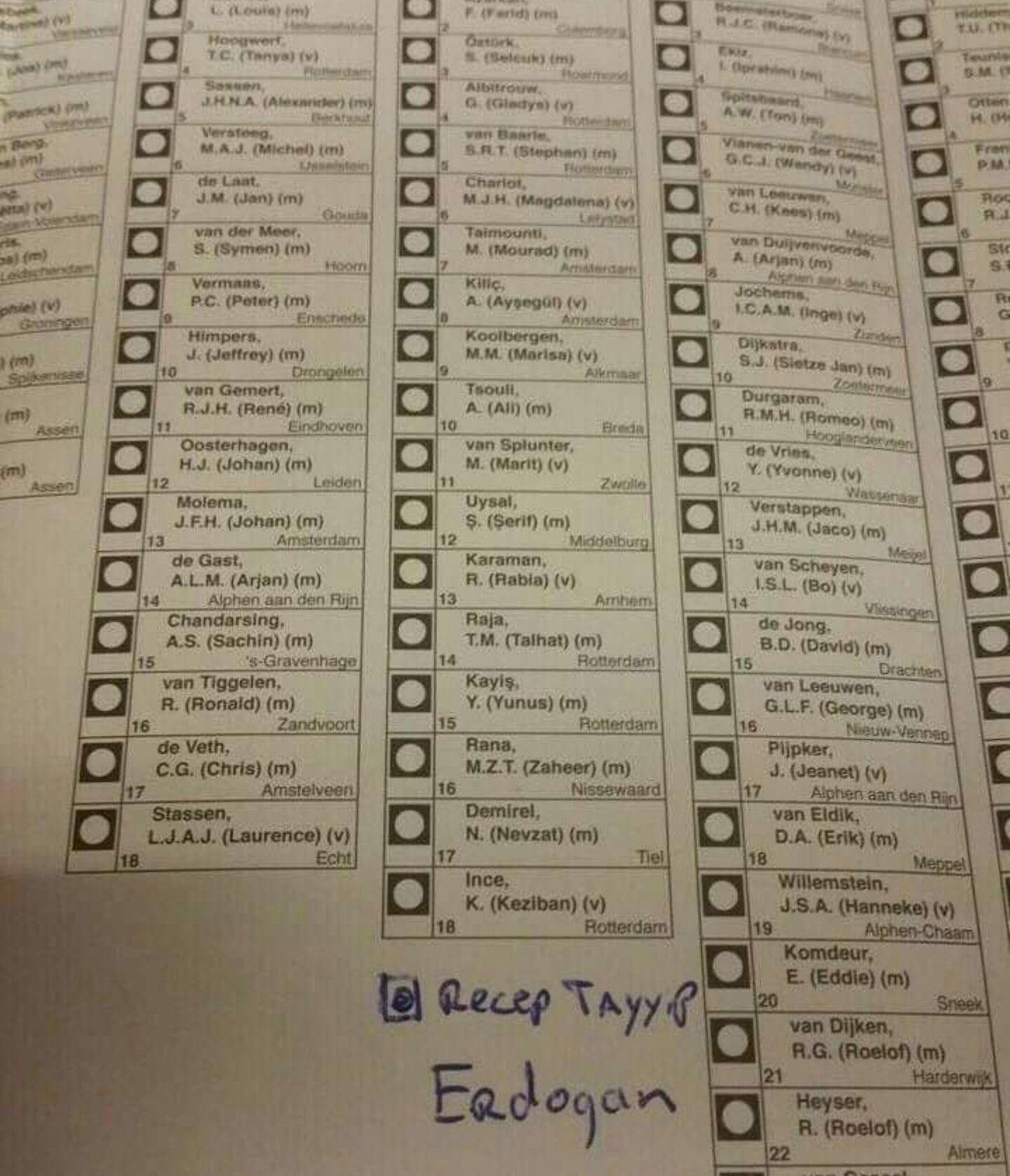 Πανικός επικράτησε στα social media όταν ανέβηκαν φωτογραφίες με ψήφους υπέρ του Τούρκου Προέδρου Ρετζέπ Ταγίπ Ερντογάν στις… εκλογές τις Ολλανδίας.