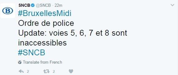Το tweet των σιδηροδρομικών σταθμών των Βρυξελλών.