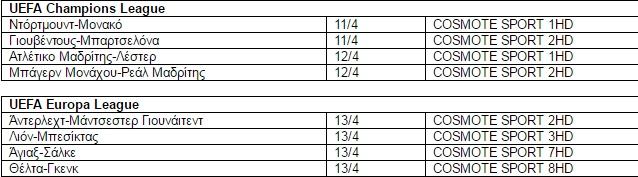 Αναλυτικά το πρόγραμμα των καναλιών στο site της COSMOTE TV: https://www.cosmote.gr/cosmotetv