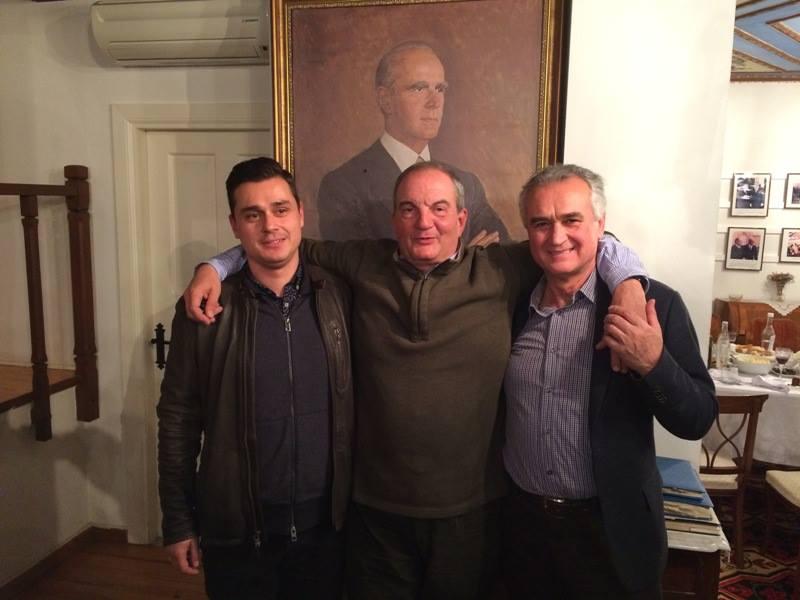 Η φωτογραφία που έκλεψε πάντως την παράσταση ήταν αυτή που τραβήχτηκε στο σπίτι του θείου του Κωνσταντίνου Καραμανλή στην Πρώτη Σερρών, με φόντο το πορτραίτο του. Αυτή απεικονίζει τον πρώην πρωθυπουργό αγκαλιά ουσιαστικά με δύο φίλους του (ο εξ αριστερών είναι ο βουλευτής της Β΄ Θεσσαλονίκης Σάββας Αναστασιάδης).
