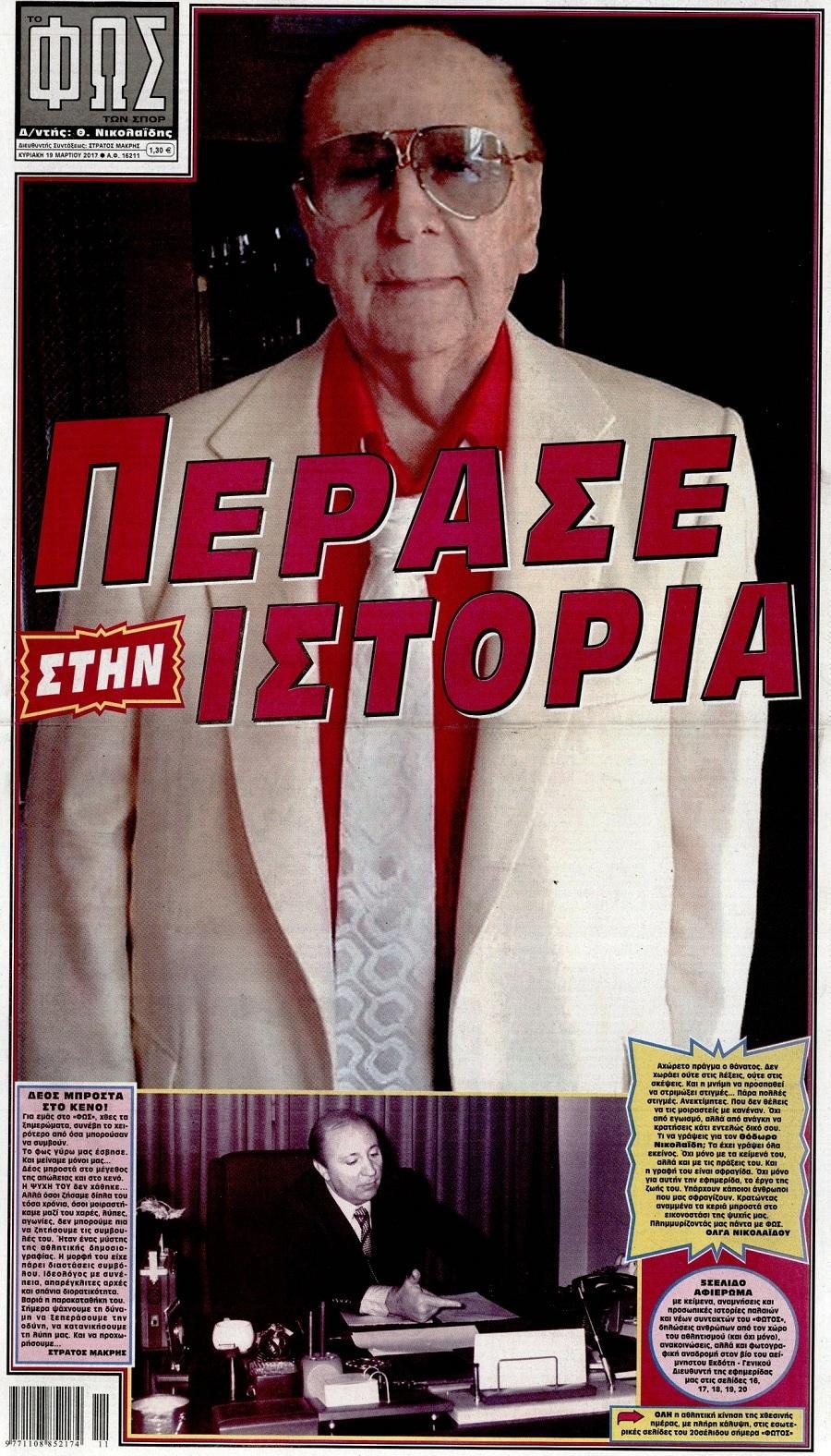 Για σύσσωμο τον αθλητικό Τύπο ο Θόδωρος Νικολαΐδης ήταν ένας φωτεινός φάρος. Για την Όλγα πέρα και πάνω από αυτό ήταν και ο πατέρας της. Η ίδια αποχαιρετά τον θρύλο της δημοσιογραφίας με ένα λιτό πλην όμως άκρως συγκινητικό κείμενο στο πρωτοσέλιδο της εφημερίδας «ΦΩΣ», που σήμερα αφιερώνει πέντε σελίδες για το «αντίο» στο δημιουργό και εκδότη του.