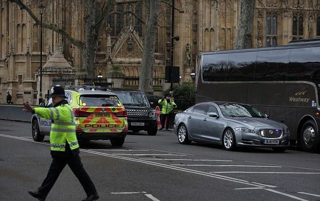Μόλις οι δυνάμεις ασφαλείας του Κοινοβουλίου αντελήφθησαν την επίθεση, έσπευσαν να απομακρύνουν την πρωθυπουργό Τερέζα Μέι από την περιοχή.