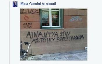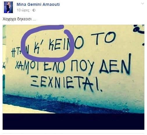 Συγκεκριμένα η Μίνα Αρναούτη δημοσίευσε στον προσωπικό της λογαριασμό στο Facebook, μια εικόνα στην οποία οι στίχοι του τραγουδιού έχουν γραφτεί από θαυμαστές του Παντελή Παντελίδη σε τοίχο και υπάρχει ορθογραφικό λάθος. Η ίδια θέλησε να ανεβάσει την φωτογραφία και να σχολιάσει χαρακτηριστικά: «Χαχαχα δηκεοσι …».