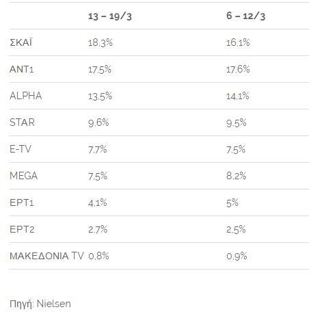 Αυτήν τη φορά πτώση είχε ο Alpha αλλά και το Mega, που για πρώτη φορά φέτος βρέθηκε πίσω από το E-TV!