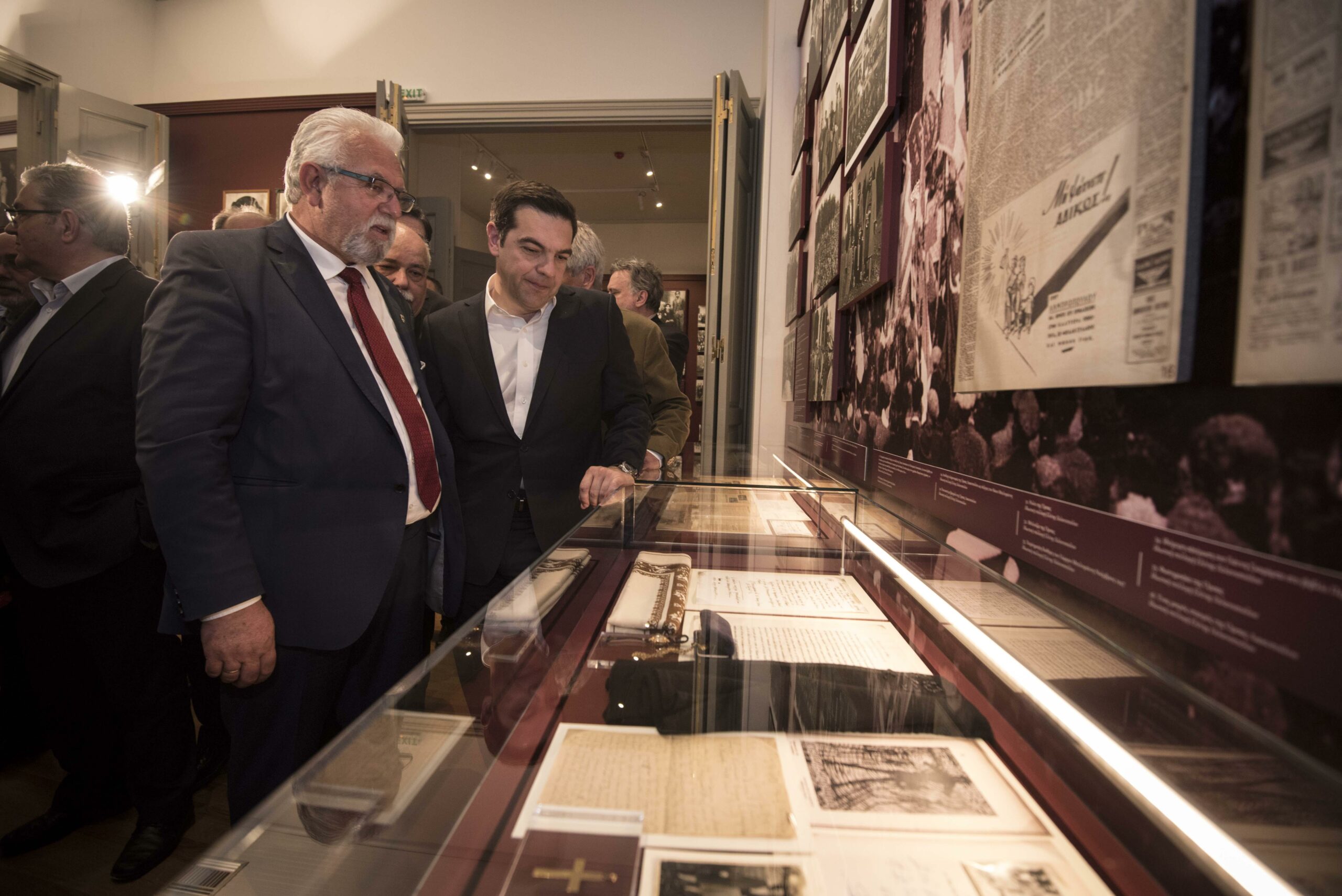Τα εγκαίνια της έκθεσης πραγματοποιούνται υπό την αιγίδα της Βουλής των Ελλήνων, σε συνεργασία με τον δήμο Ήλιδας. Παρόντες στα εγκαίνια θα είναι ο πρόεδρος της Βουλής Νίκος Βούτσης και ο δήμαρχος Ήλιδας Χρήστος Χριστοδουλόπουλος, οι οποίοι θα χαιρετίσουν την έναρξη λειτουργίας της μόνιμης έκθεσης. Κατά τη διάρκεια των εγκαινίων θα απευθύνει χαιρετισμό και ο γενικός γραμματέας της κεντρικής επιτροπής του ΚΚΕ, Δημήτρης Κουτσούμπας, ενώ θα παραστεί και ο πρόεδρος της Ένωσης Κεντρώων Βασίλης Λεβέντης.