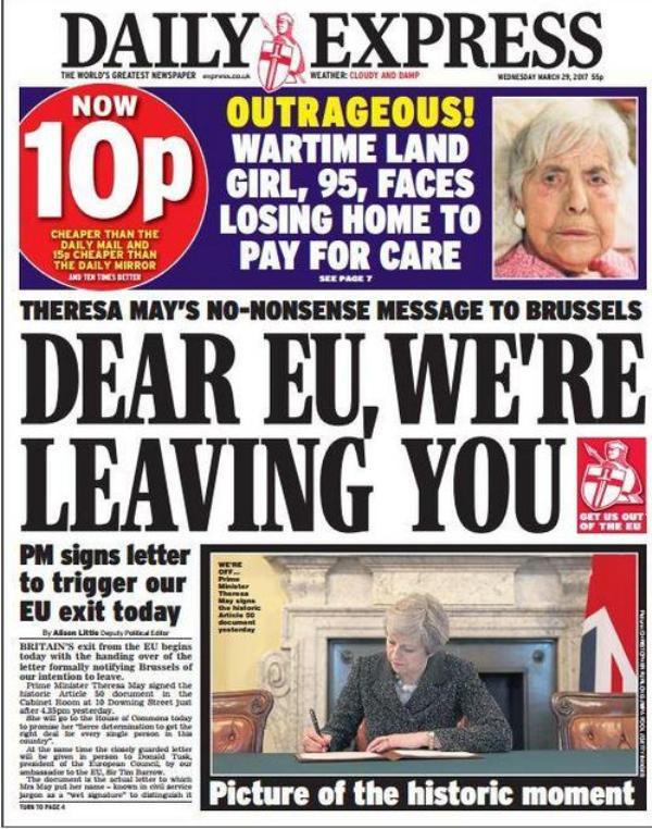 Daily Express γράφει: «Αγαπητή ΕΕ, σε εγκαταλείπουμε»