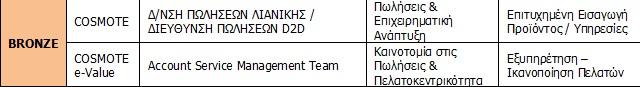 Εξίσου σημαντική είναι η διάκριση της COSMOTE e-Value, που κέρδισε 3 βραβεία -εκ των οποίων τα 2 Χρυσά- για τα εκπαιδευτικά προγράμματα, τις τηλεφωνικές πωλήσεις και την εξυπηρέτηση πελατών. Η COSMOTE e-Value παρέχει ολοκληρωμένες υπηρεσίες Contact Center που προσθέτουν αξία, προσφέροντας μία εξαιρετική εμπειρία σε κάθε επικοινωνία με τον πελάτη.
