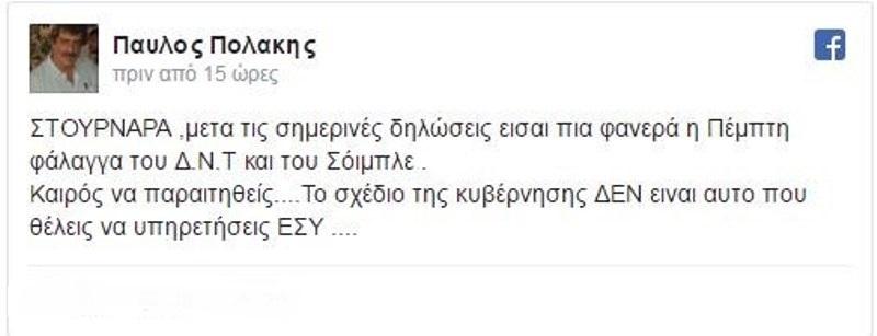Δριμύτατη επίθεση κατά του διοικητή της Τράπεζας της Ελλάδας, Γιάννη Στουρνάρα, εξαπέλυσε από τον προσωπικό του λογαριασμό στο Facebook ο αναπληρωτής υπουργός Υγείας Παύλος Πολάκης.