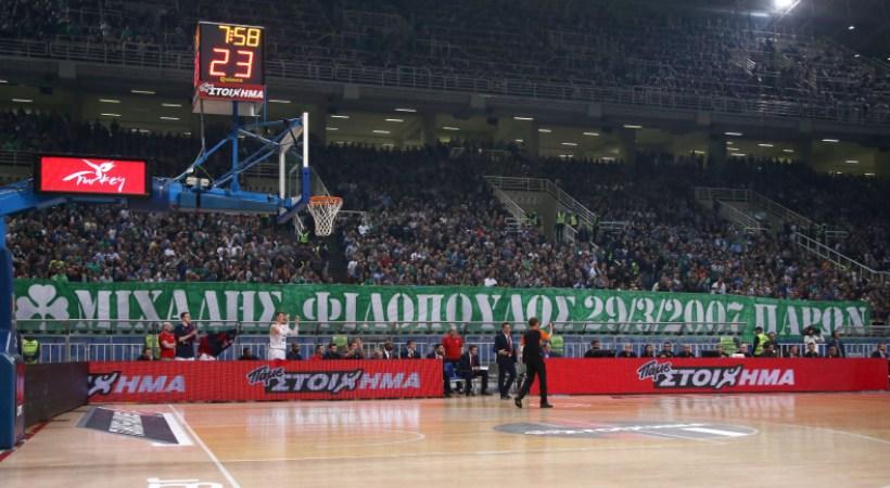 Παράλληλα κρέμασαν ένα τεράστιο πανό στις κεντρικές εξέδρες του ΟΑΚΑ, που αναφέρει: «Μιχάλης Φιλόπουλος 29/03/2007 παρών».