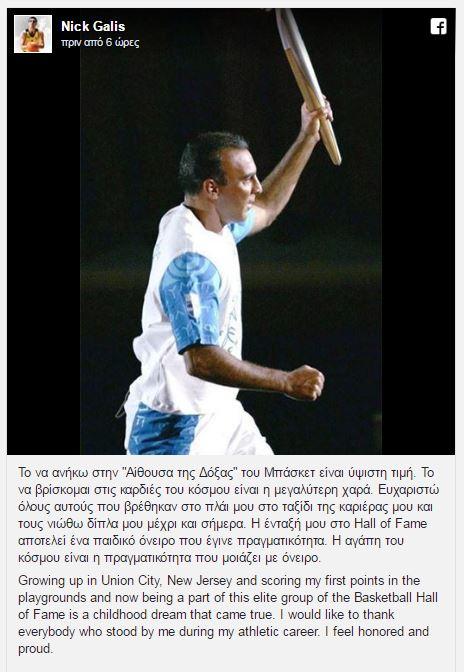 Ο πρώτος Έλληνας που μπήκε στην «Αίθουσα Δόξας» του μπάσκετ έγραψε στο Facebook: